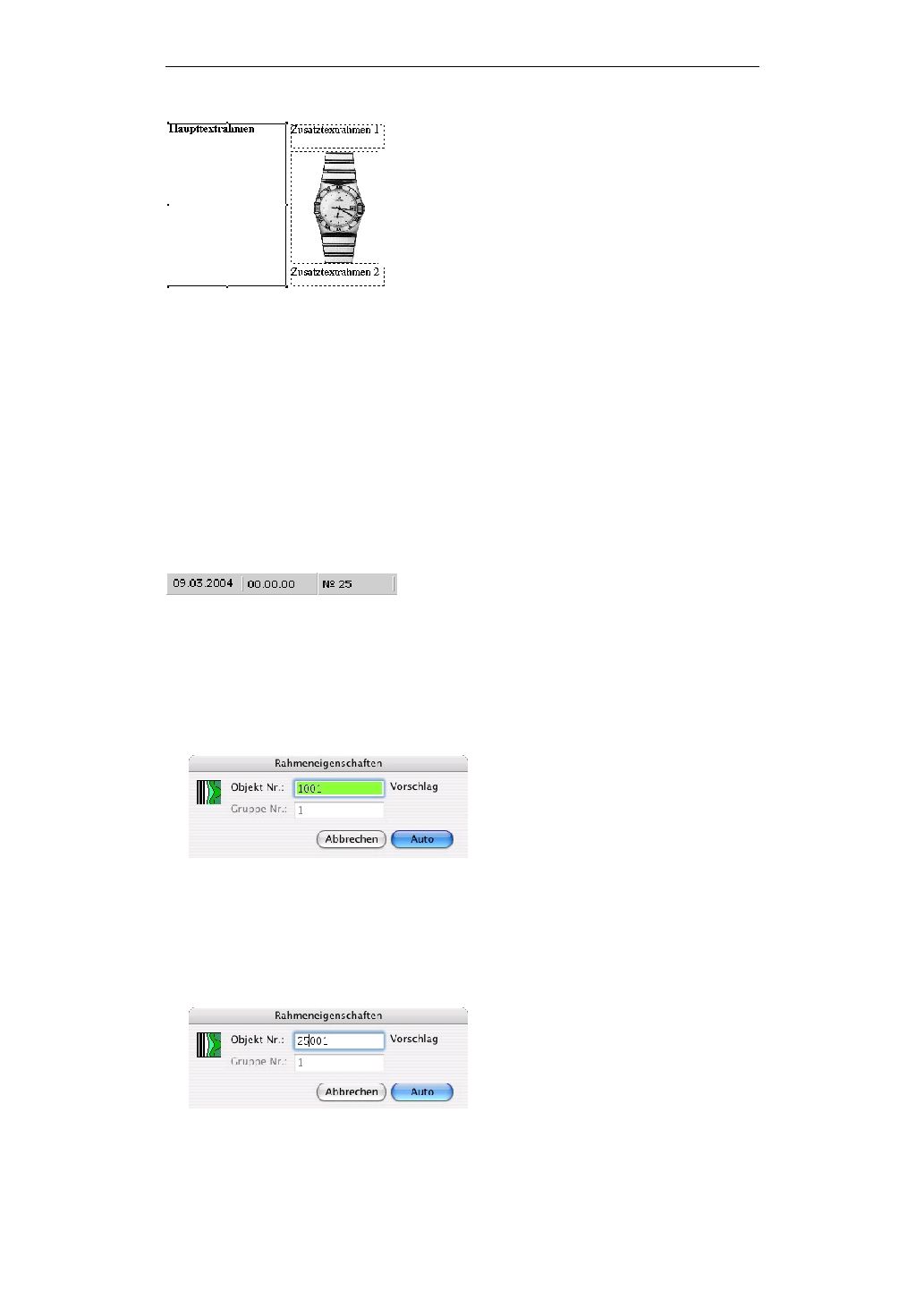 Die Ziffern 001 sind die Kennung für den Haupttextrahmen, die Modulnummer ist die