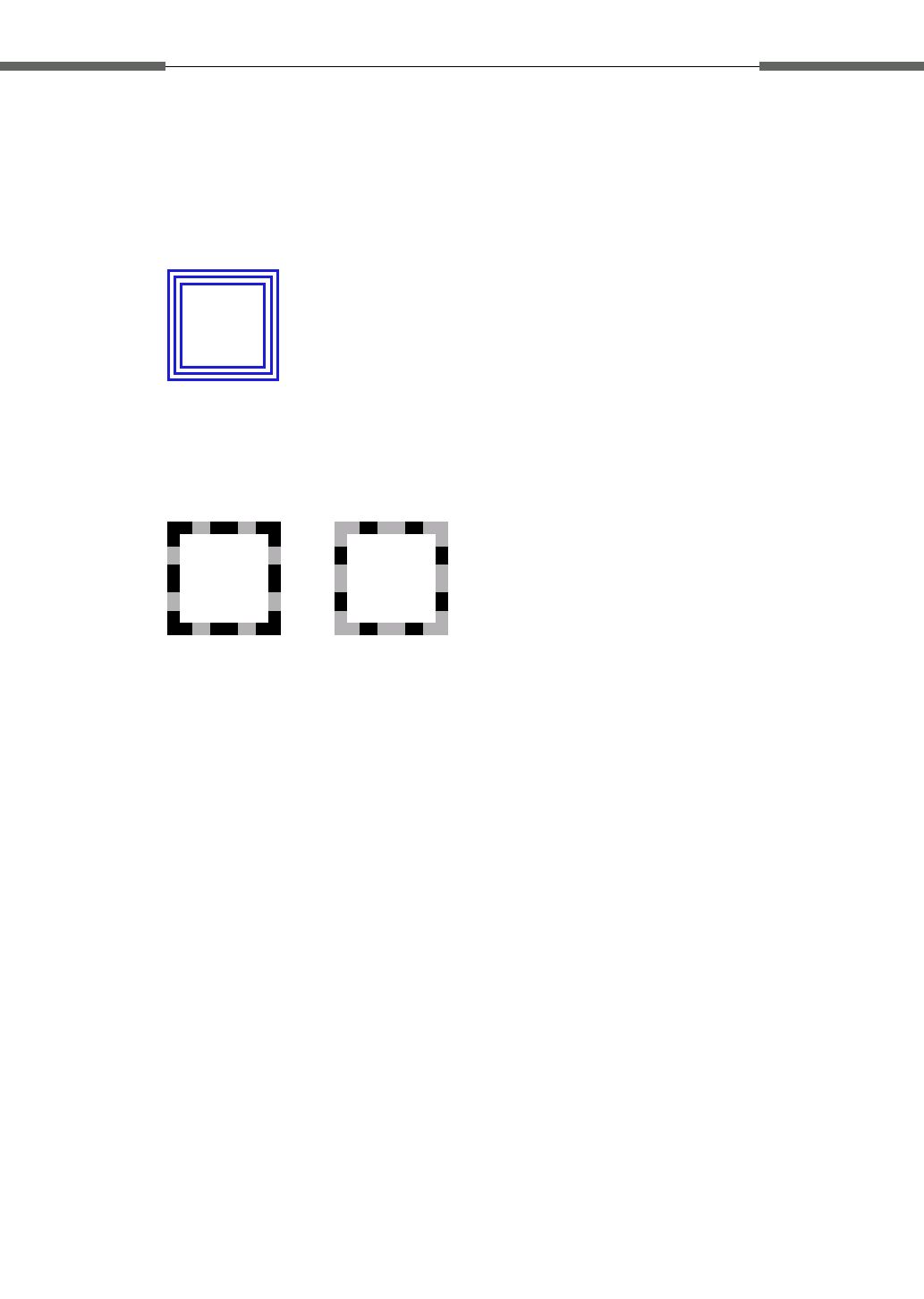 Erzeugt zwei Rahmen mit gestrichelter Linie in 100% / 30% schwarz und 30% / 100%