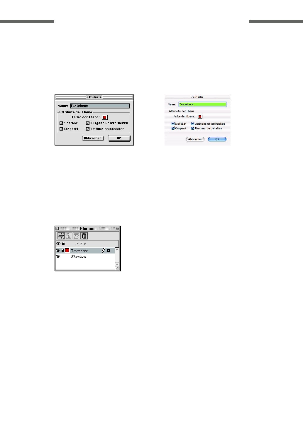 Sie entsprechen den Optionen des Ebenen-Dialogs in QuarkXPress: