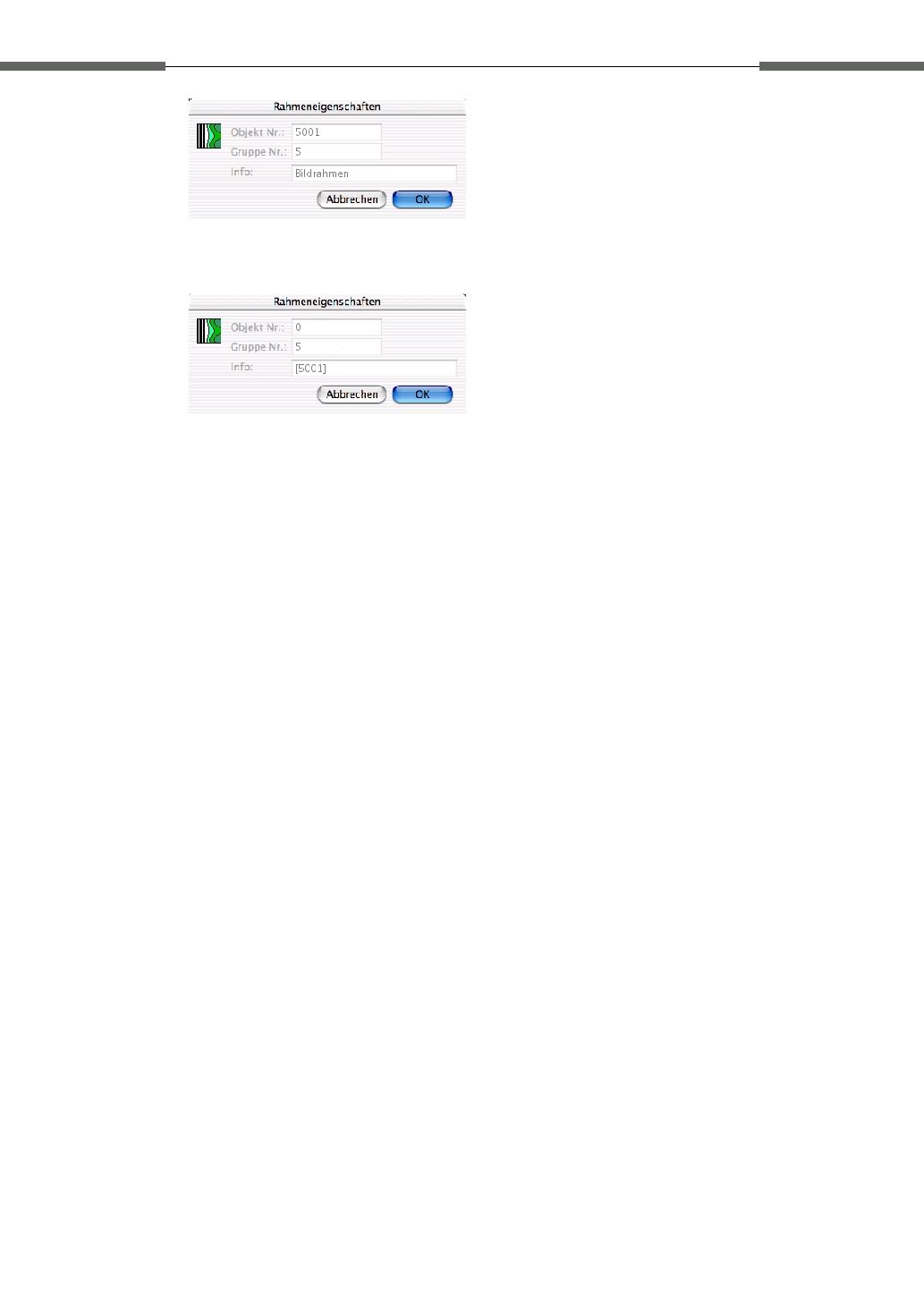 immer als Infotext einsetzen. Dupliziert der Anwender nun diesen Bildrahmen, so erhält