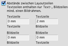 Zwischen einer Bildzeile und einer Textzeile soll 5 mm Abstand sein.