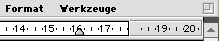 - Wählen Sie zweimal den Befehl Editor/Menü und Lineal, sodaß das kleine Menü des Texteditors über dem Lineal erscheint.